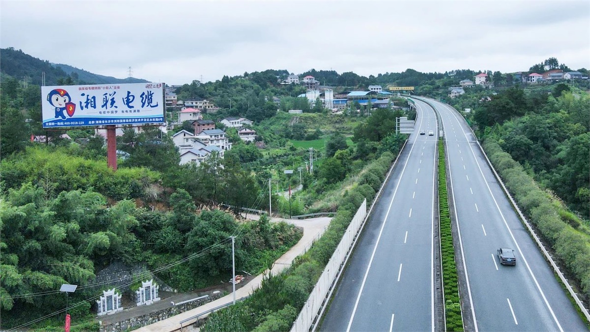 高炮廣告(又稱擎天柱廣告、單立柱廣告)作為戶外廣告的核心載體,以其獨特的空間占位和視覺沖擊力,在品牌傳播中展現出不可替代的商業價值。多年來,湘聯電纜持續亮相高炮廣告,霸屏全國高速優質干線,將“電纜中國夢,有電有湘聯”的企業愿景傳遞給消費者,充分彰顯行業標桿風范。